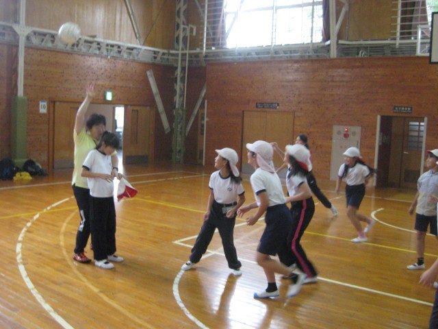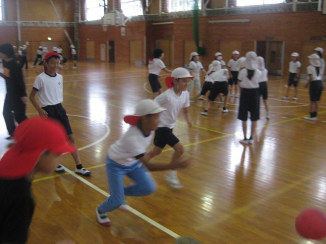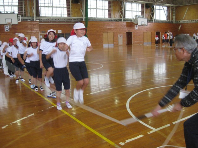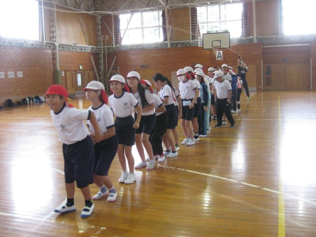 午前中のウォークラリーは、あいにくの雨でできませんでしたが、体育館でいろいろなゲームを楽しみました。
