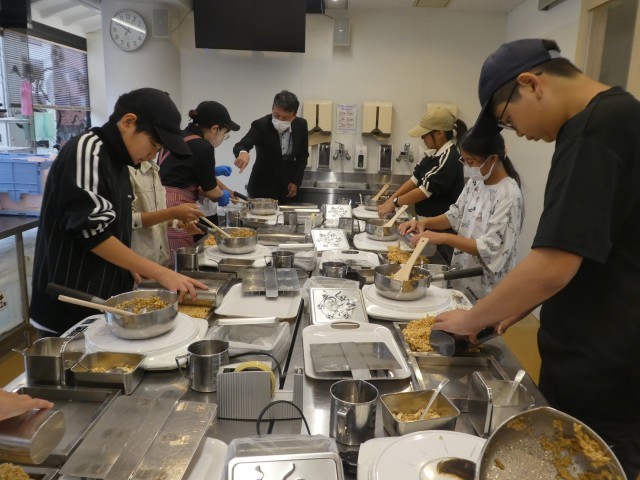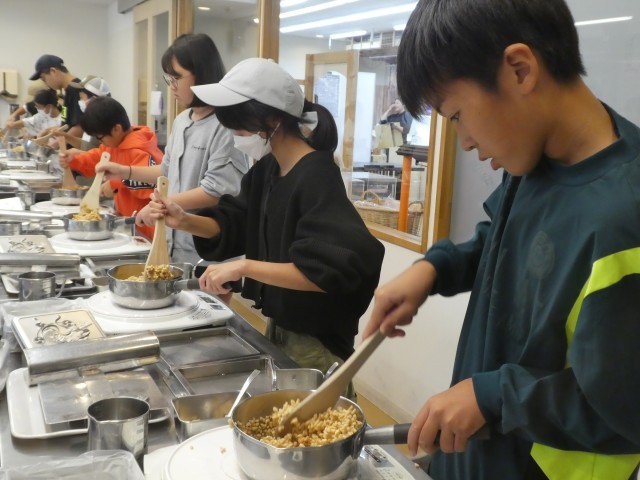 雷おこしチームです。説明を聞きながら手順通り作っていくとあっという間に雷おこし完成!できたてのおこしはとってもおいしかったみたいです。