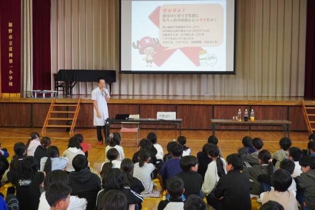 5年生は薬学講座で正しい薬の服用の仕方について学びました。