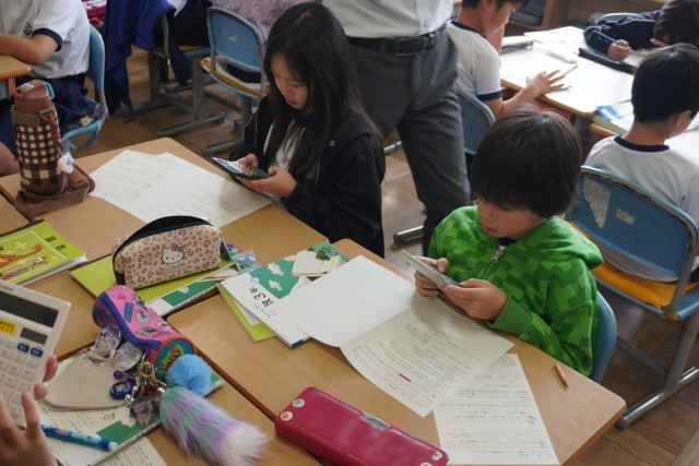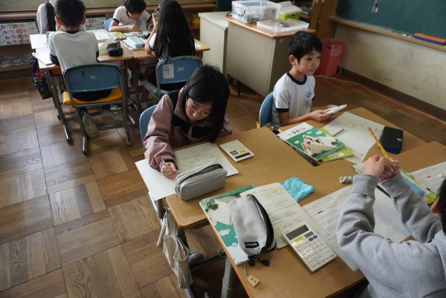 電卓を使いながら子供たちは一生懸命計算をしています。