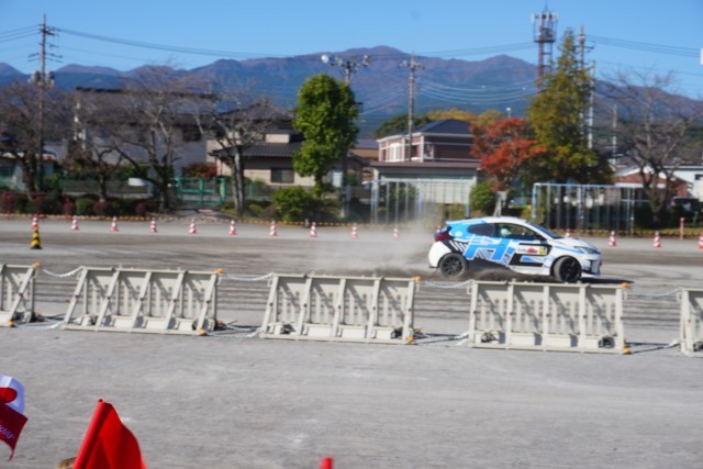 その後、グランドにて水素で動くラリーカーに本校の子供も同乗してドリフト走行です!