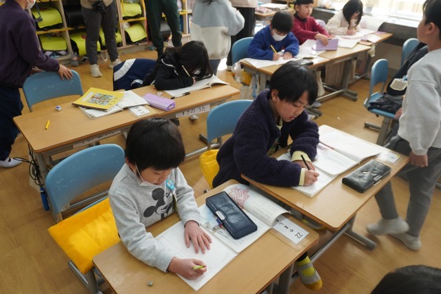 子供たちは、スイミーになったつもりで気持ちをノートに書きたり発表したりしました。