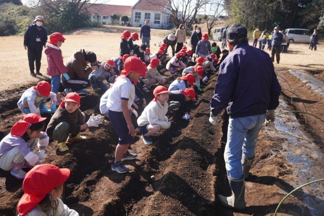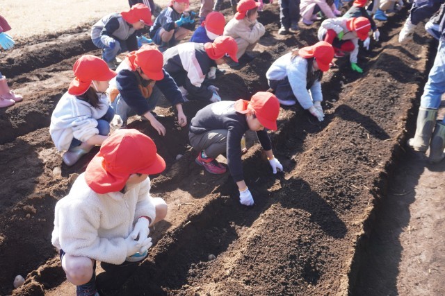 1年生はジャガイモの種芋を植えました。