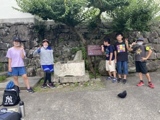 韮山で班毎にフィールドワークをしています。どの班も道を確認しながら、頑張って目的地を目指しています。