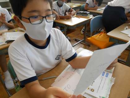 英語で月日を書いたり、「I want 〜」を使って文を書いたりと、今までに学習したことをフル活用しました。