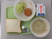 今日の給食は、6年1組さんが考えた献立です。6年生は、家庭科で献立を考える授業があるのですが、今回は給食の献立を考えてもらいました。