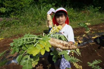 大量の大根、一本一本がいろいろな形をしており、子供たちも、びっくり!まっすぐなもの、曲がったもの、2股・3股にも分かれているものなど、本当にいろいろです。