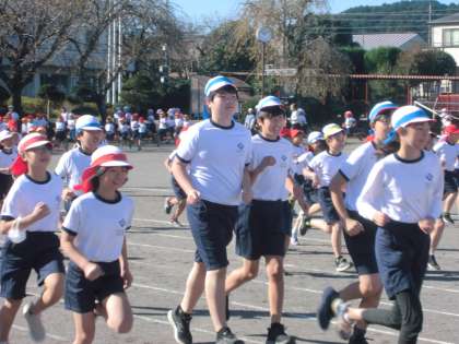 天候にも恵まれ、本日より駆け足練習日課がスタートしました。健康チェックでは、本日よりしばらくの間、入力項目が多くなりますが、子供たちの安全のためのご協力いただきたいと思います。よろしくお願いします。