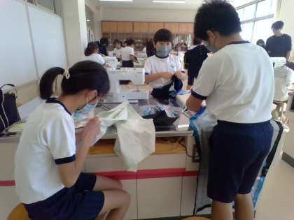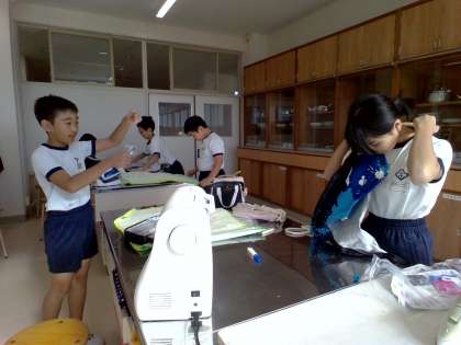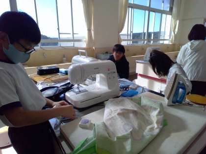 ミシンの扱いに苦戦しながらも、頑張って作っています!