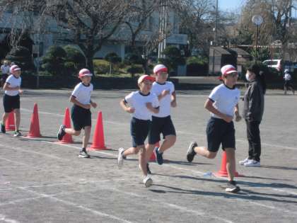 6年生体育の授業風景です。それぞれの目標に向かって、全力で取り組む姿が見られます。さすが6年生です。