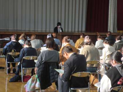 来年度、入学予定の児童のいる保護者の方へ、入学用品説明会を実施しました。現1年生主任より、入学までの期間でのお願いや、学用品についての説明が丁寧に行われました。お忙しい中での参加をありがとうございました。入学に向けての準備をよろしくお願いいたします。