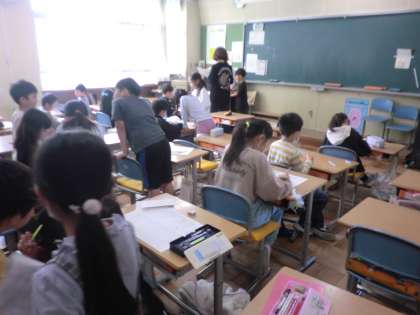 2年生の授業の様子です。今朝行った漢字大会の結果が戻ってきて一喜一憂していました。生活科「わたしのまち」では、自分の通学路の中で、友達に紹介すための準備が始まりました。