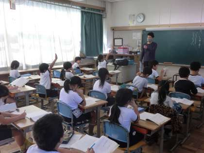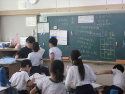 3年生の授業風景です。国語では、作文の書き方について確認をしました。かぎかっこの文の改行するときや、段落の作り方など、正しく作文を書くための決まりを学びました。算数の小数の計算も頑張っています。