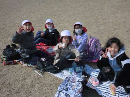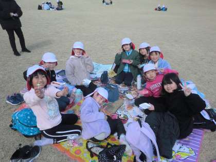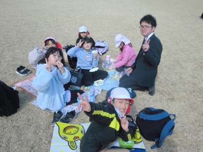運動公園にて、みんなでおいしくお弁当をいただきました。準備をありがとうございました。