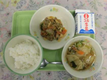 今日は、旬の野菜がモリモリの中華メニューでした!「今日ワンタンスープだよね!」と献立だよりをチェックしてくれていた子どもたちから声をかけられました。楽しみにしてくれていることがとても伝わってきました。