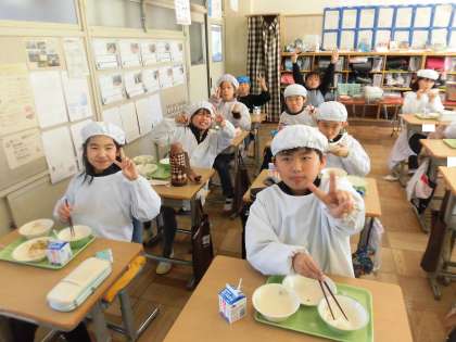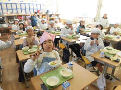 給食室では、生のしょうがをみじん切りにして入れました。普段のみそ汁や豚汁の仕上げに入れるだけで、体がぽかぽかします。チューブのおろししょうがでしたら、4人分のみそ汁に対して2〜3cm入れるのがおすすめです♪ぜひご家庭でもお試しください(^^)