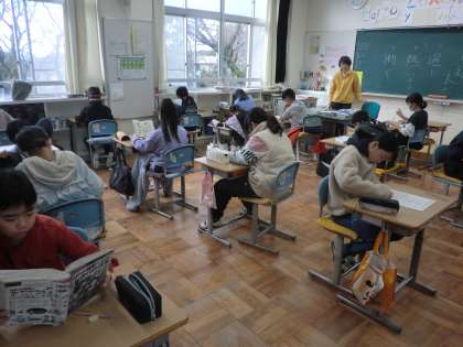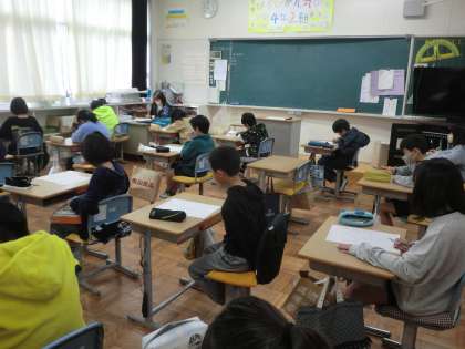 4年生の授業風景です。4年生は3クラスそろって、計算大会を実施しました。これまでの練習の成果が出せるといいなと思います。