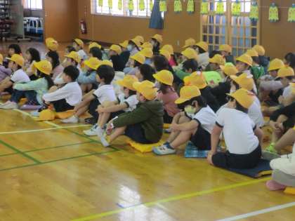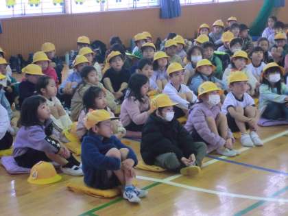 1年生の授業風景です。体育館にて、来週の「6年生を送る会」に向けての練習を行っていました。1年間で大きく成長した1年生、もうすぐ新しい1年生を迎える側になることで、みんな張り切っています。