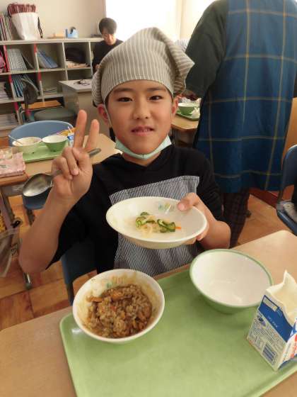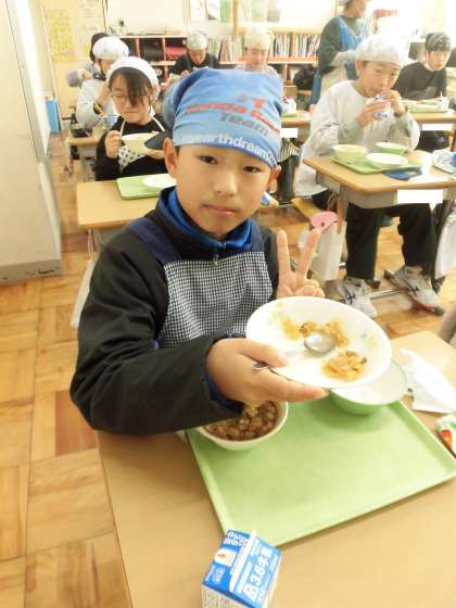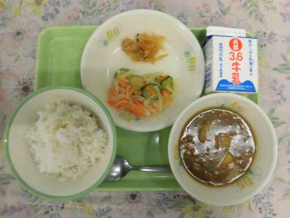 今日は、子どもたちが待ちに待ったカレーの日!どの子もテンションMAXでおいしそうに食べていました♪