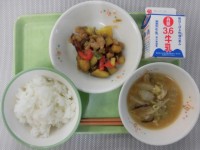 【麦ごはん・牛乳・チキンカレー・大根サラダ・福神漬け】