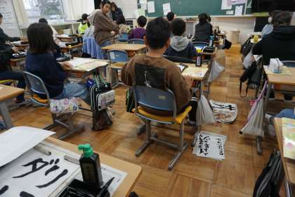 2組:書写 自分で題字を決めて書いています。いろいろあって楽しそうです。