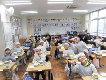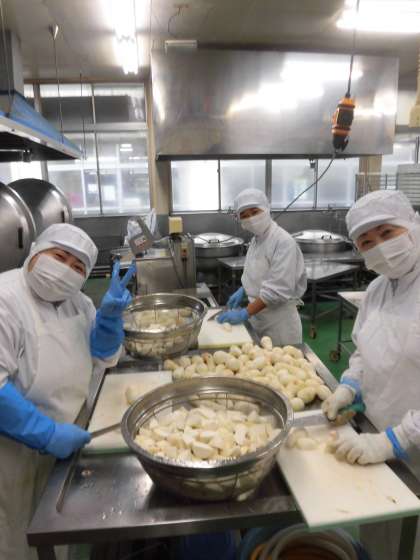 今日は、三島市産のさといもを使った「さといものそぼろ煮」を給食室で作りました。とろホク感を!と給食員さんが大きさにこだわって切ってくれました。「さといもとろっとしておいしい!」「そぼろ煮とごはんぴったり!」「おもちかと思ったらとろけた〜!さといも好きになった!」とさといもの味を楽しんでいました♪