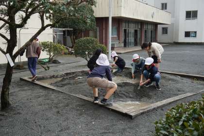 雨が上がり、お日様が顔を出し始めました。子供たちは、元気にグラウンドへ出ていきました。雨が続いているのでうれしい晴れ間ですね。砂場も人気です。
