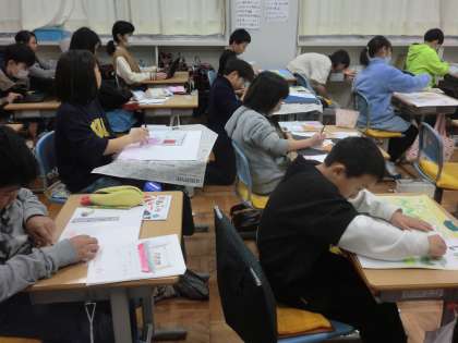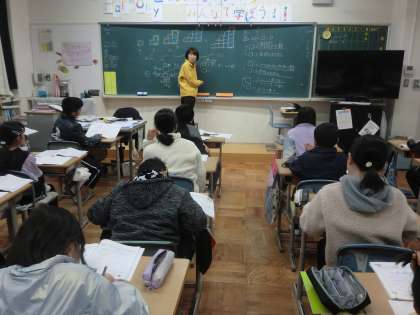 4年生の授業の様子です。図工では、物語や詩からイメージした絵を描きました。算数では、数量の関係をグラフに表す学習をしました。