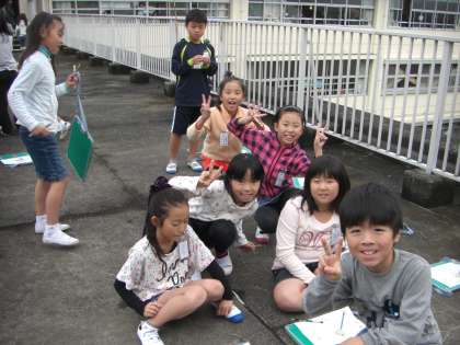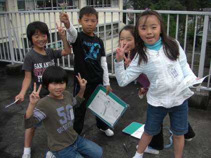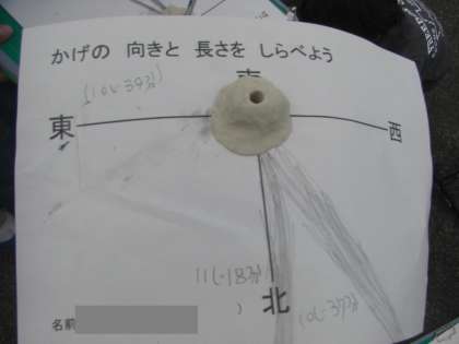 3階の渡り廊下で、3年生が影の学習をしていました。