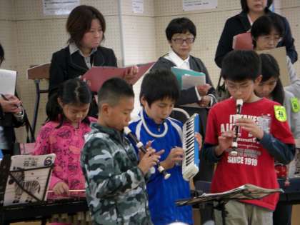 音楽室でも、たくさんの先生方の前で演奏ができました。