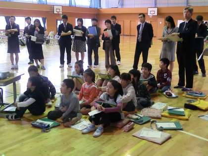 50人以上参観者がいると、教室には入りきれないので体育館で行いました。