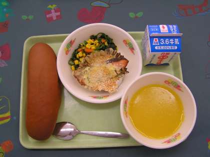 今日の鮭は北海道の海でとれたものです。「さけ」という名前は、アイヌ語の「しゃけんべ」からきています。