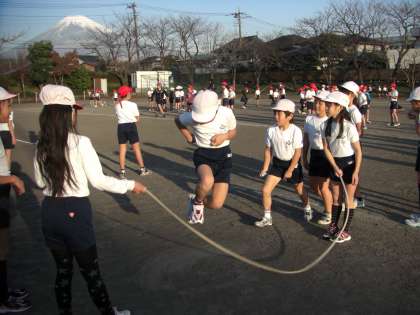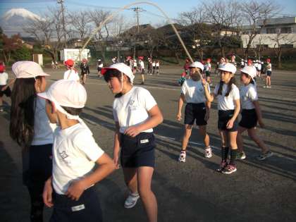 3年生が長縄をしています。テンポよく跳んでいきます。