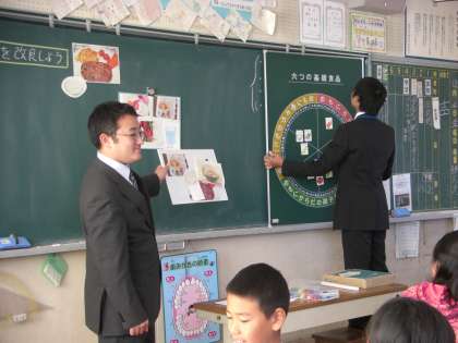6年3組は「一食分の食事について考えよう」と、班ごとに栄養バランスを