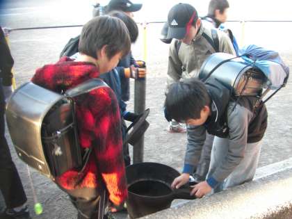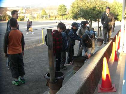 5年生が朝から釜の準備をしています。