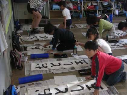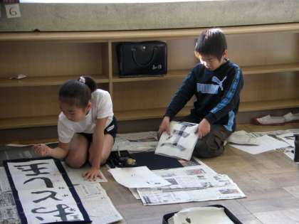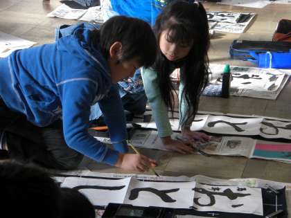 3年生の書き初めは「おとし玉」です。たくさんもらえるかな?