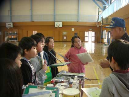 起震車体験を待っている間、体育館でその他の体験をしています。
