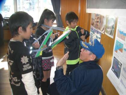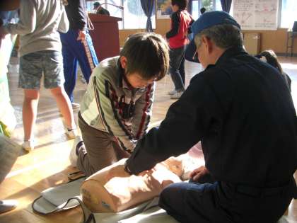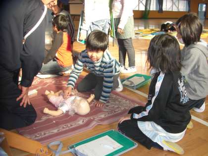 体育館の中では救急蘇生法や地震について詳しく教えてもらっています。