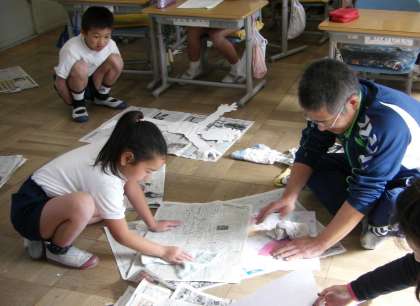 2年生の版画は、台紙に入りきらないぐらいダイナミックです。
