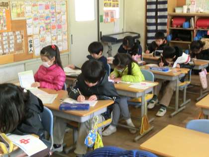 担任が出張で不在でも、とても静かに学習しています。立派です。