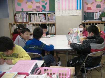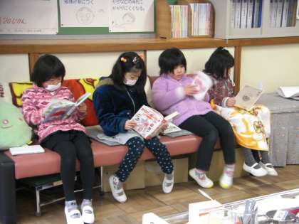 朝運動の間、かぜぎみの子どもたちはあたたかい部屋で静かに過ごしました。