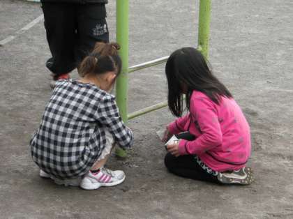 今日は一組が砂鉄を探しています。「金だったらいいのにね。」
