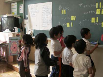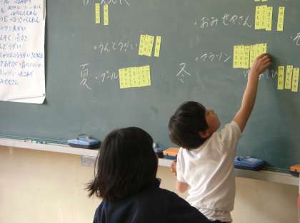どの絵をだれが担当するか、自分たちで人数を考えています。