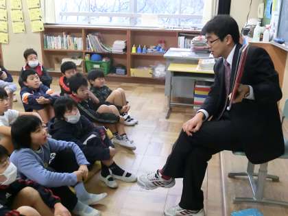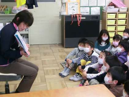 今日2月23日は、「富士山の日」です。先生たちが、富士山にちなんだ本の読み聞かせをしたり、お話をしたりしました。
