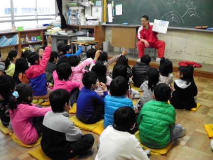 低学年でも、いつもとは違う先生が読み聞かせや富士山についてのお話をしてくれました。