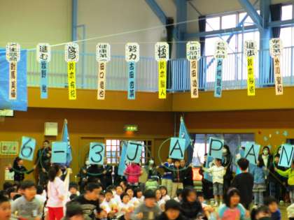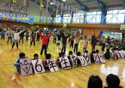 3年生は、日本を元気にする歌で6年生に元気を送ります。