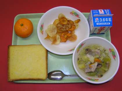 れんこんは「蓮の根」という意味です。みなさん、ハスの花を見たことはありますか?池などにある水草です。れんこんはハスの茎の部分が大きくなったもので、泥の中に埋まっています。ですから収穫する時は、根元にポンプで酸素をおくって掘り起こしてとります。れんこんはインドが原産で、その後中国へ渡りました。日本へは鎌倉時代に伝わったと言われています。れんこんは、よくおせち料理に登場します。れんこんには穴があって「見通しがよい」ということで縁起がよい食べ物とされています。れんこんには、たっぷりのビタミンCが含まれています。ビタミンCは細胞どうしをつなぐコラーゲンをつくりだし、がんを予防します。また、れんこんを切ると糸をひきます。これは「ムチン」というたんぱく質で滋養強壮に役立ちます。食物繊維もたくさん含まれているので、血圧を正常に保ったり、便通をよくしてくれます。レンコンを食べて見通しがよい毎日を送りましょう。