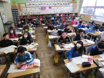 インフルエンザで休んでいた子供たちが戻ってきて、にぎやかな教室になりました。みんなうれしそうです。
