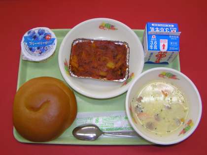 かぼちゃとポテトのミートグラタン・コーンクリームスープ