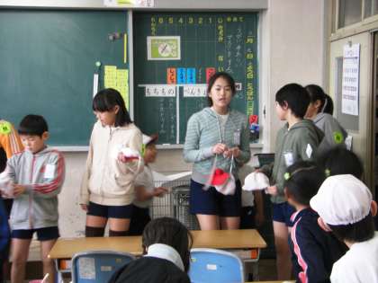 今日は今年度最後の富っこタイムです。1年生は、教室に6年生が迎えに